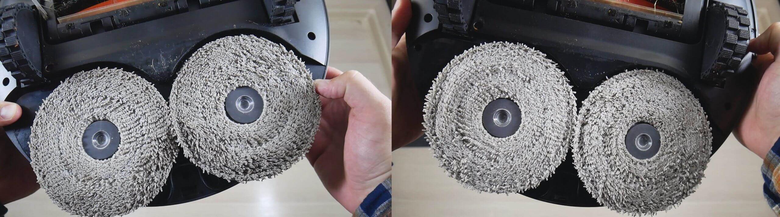 Antrasis variantas – įjungti automatinio kilimų vengimo funkciją šlapio valymo režimu. Trečiasis režimas yra unikalus. Robotas dulkių siurblys pirmiausia atlieka sausą ir šlapią kietų grindų valymą, tada grįžta į bazę, automatiškai atjungia valymo pagalvėles ir grįžta prie valymo proceso, išsiurbęs kilimus be pagalvėlių. Tai ypač naudinga valant kilimus su dideliu ir vidutiniu plauku, nes prireikus visiškai pašalinamas bet koks pagalvėlės sąlytis su kilimu.