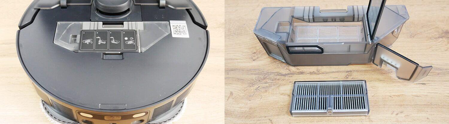 HEPA filtro vieta pakeista; dabar jis sumontuotas viršuje. Priešais HEPA filtrą sumontuotas tinklelis, sukuriantis dvigubą filtravimo sistemą. Dulkių surinktuvą ir filtrą galima plauti vandeniu. Vandens bakas yra paslėptas roboto viduje ir automatiškai užpildomas stotelėje. Bako talpa yra 80 ml.