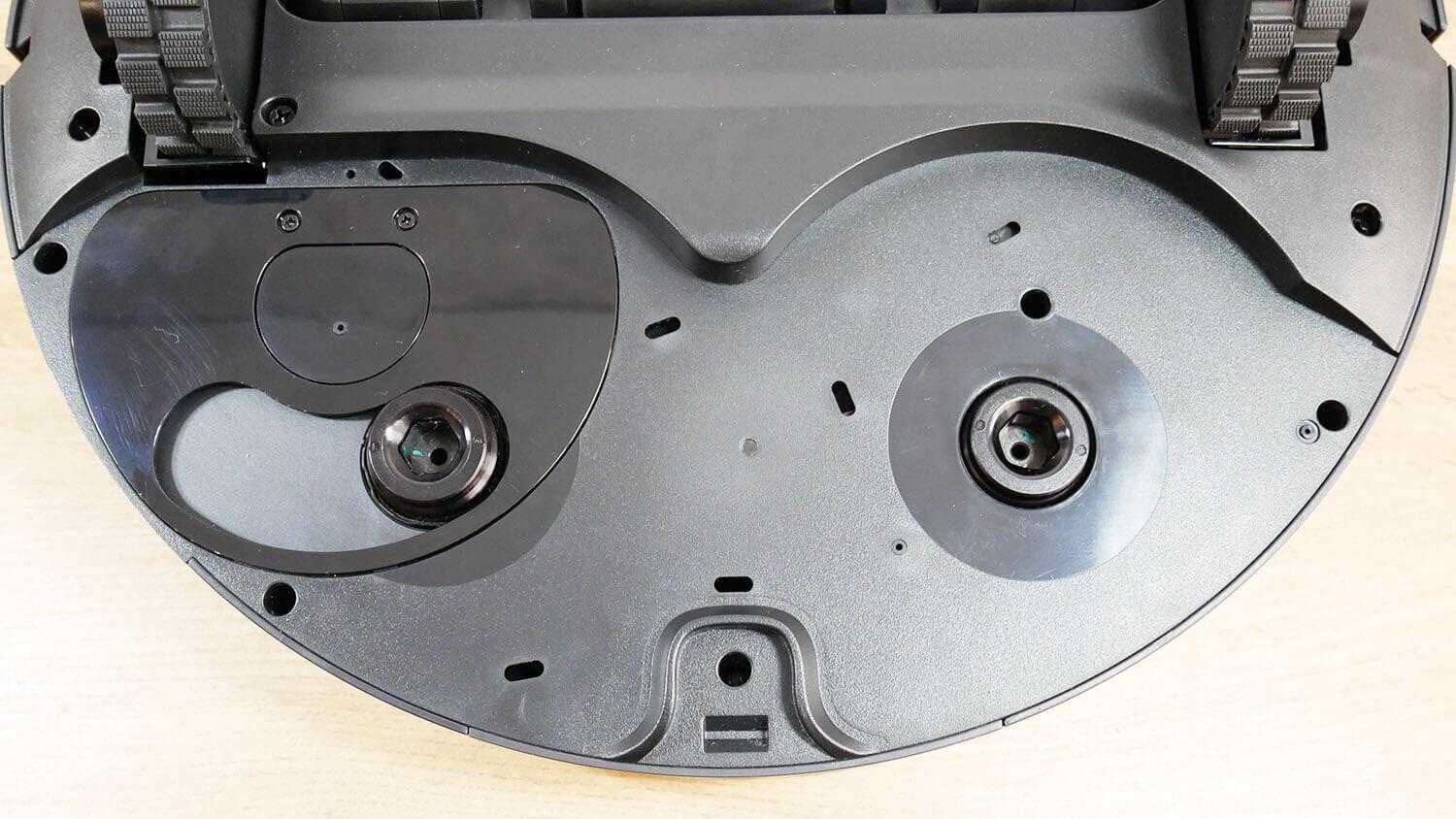 Robotas apačioje turi keturis apsaugos nuo kritimo jutiklius. Kilimo jutiklis yra šalia besisukančio volelio. Šoninis šepetys yra trijų sijų, greito atleidimo šepetys.