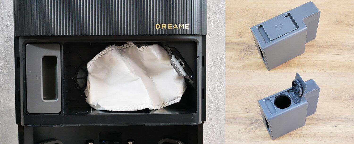 - Pilnai įkrauta „Dreame Bot X30 Pro“ stotelė, pagal 2023 m. standartus, pati išvalo dulkių surinktuvą, išplauna šluostes karštu vandeniu, džiovina šiltu oru ir netgi automatiškai sumaišo skalbiklį bei dezinfekuoja šluostes UV lempa. Stotis yra labai efektyvi visose savo funkcijose, įskaitant savaiminį valymą, plovimą ir džiovinimą. Stotelės matmenys taip pat sumažinti, o tai ypač svarbu tiems, kurie tai vertina.