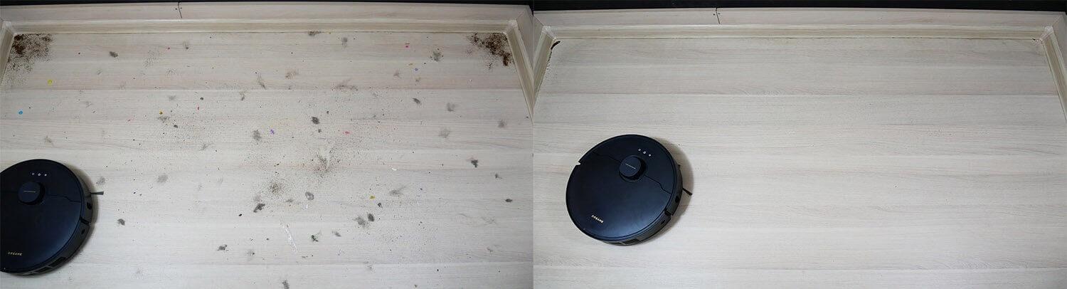 Įvairių tipų šiukšlių surinkimo kokybė nuo laminuotų grindų yra gera. Nedidelis šiukšlių kiekis lieka tik kampuose, kur nepasiekia apvalūs robotiniai dulkių siurbliai. Tačiau net ir kampuose jis išvalo šiek tiek geriau nei dauguma kitų apvalių robotinių dulkių siurblių.