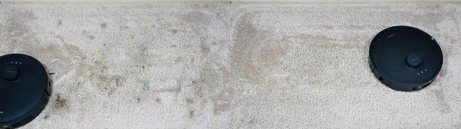 Kalbant apie šlapią kilimų valymą, robotas gali rinktis iš kelių veikimo parinkčių. Pirmasis – automatiškai pakelti valymo šluostes, kai jos patenka į kilimus, taip robotui dulkių siurbliui vienu metu siurbiant ir šluostant grindis, todėl kilimai lieka sausi ir švarūs.