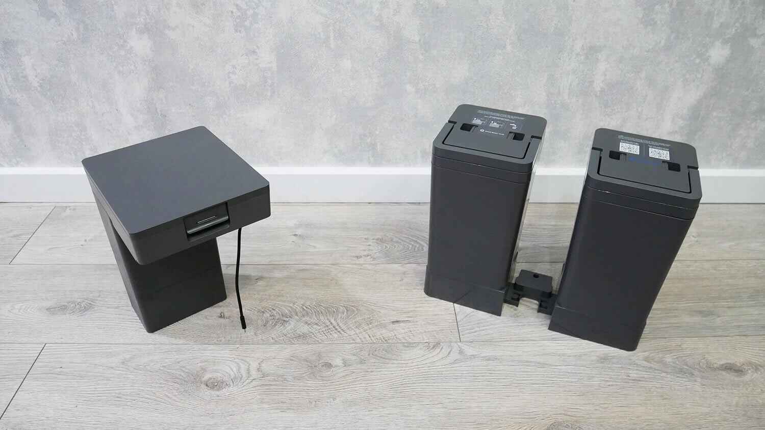 Atliekų maišas yra centre už dangtelio. Pats maišas yra standartinės 3,2 litro talpos. Šalia jo yra ploviklio rezervuaras, kuris automatiškai susimaišo su švariu vandeniu. Tai dabar daugkartinio naudojimo indas su dangteliu, todėl ploviklio papildymas yra daug patogesnis ir ekonomiškesnis. Galite užsisakyti litro butelį, kuris yra pigesnis nei dvi 450 ml kasetės iš X20.