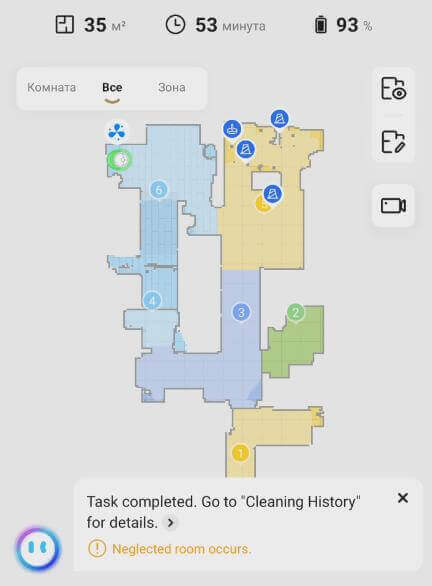 Kalbant apie navigaciją namuose, robotas dulkių siurblys valo kambarį po kambario, sekdamas perimetrą, o tada vingiuotu raštu. Po kiekvienų 15 kvadratinių metrų valymo, kaip nustatiau, jis grįžta į stotelę ir išplauna valymo pagalvėles, o tada tęsia valymą nuo ten, kur baigė. Nelieka jokių neišvalytų vietų; šis modelis turi puikią navigaciją!