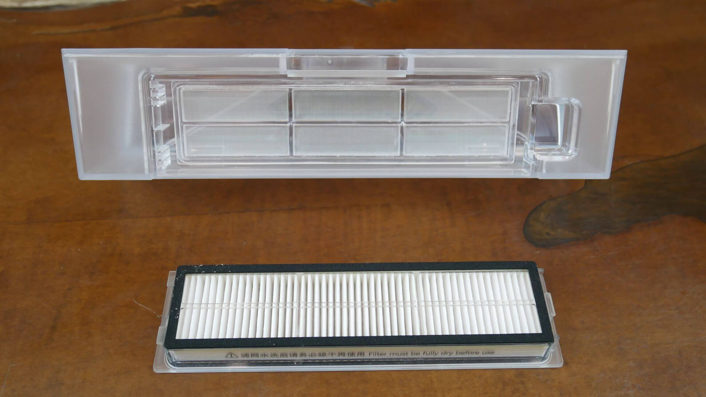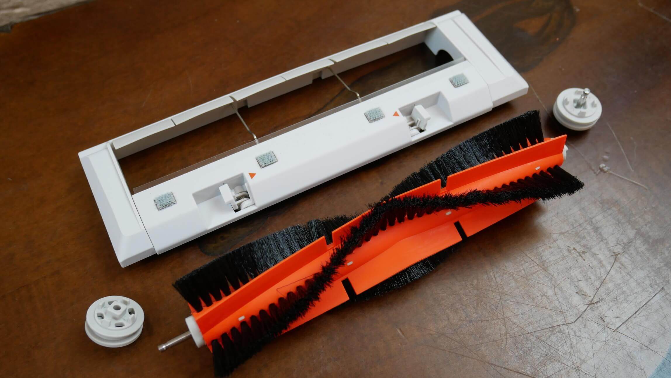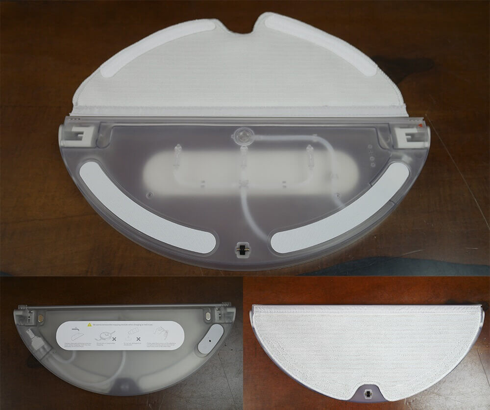 Šlapio valymo antgalis pritvirtintas prie korpuso apačios dviem mechaniniais tvirtinimo elementais. Viduje rasite siurblį, skirtą elektroniniam vandens srauto valdymui. Valymo šluostė tvirtinama „Velcro“ lipdukais ir grioveliais, kaip ir daugumos kitų „Xiaomi“ robotų dulkių siurblių. Pati valymo šluostė yra pūkuota per visą antgalį.