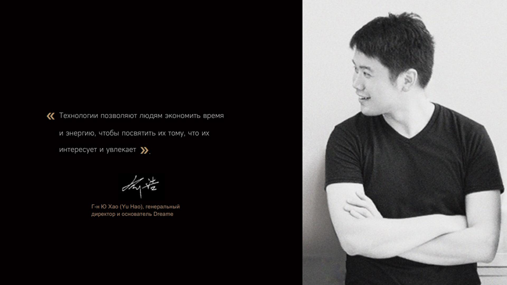 Pirmiausia, leiskite papasakoti apie pačią „Dreame“. Tai Kinijos įmonė, įkurta 2017 m. Jos įkūrėjas ponas Yu Hao iki šiol yra generalinis direktorius. Jis baigė Tsinghua universitetą, vieną iš pirmaujančių universitetų Kinijoje. Jis nuo vaikystės domėjosi technologijomis ir gali pasigirti tokiais pasiekimais kaip dvigubo valdymo lusto išradimas būdamas 12 metų ir „Sky Workshop“ tyrimų programos, kuri orientuota į aerodinamiką ir orlaivių variklių tobulinimą, įkūrimas. Pati „Boeing“ investavo į įmonę.