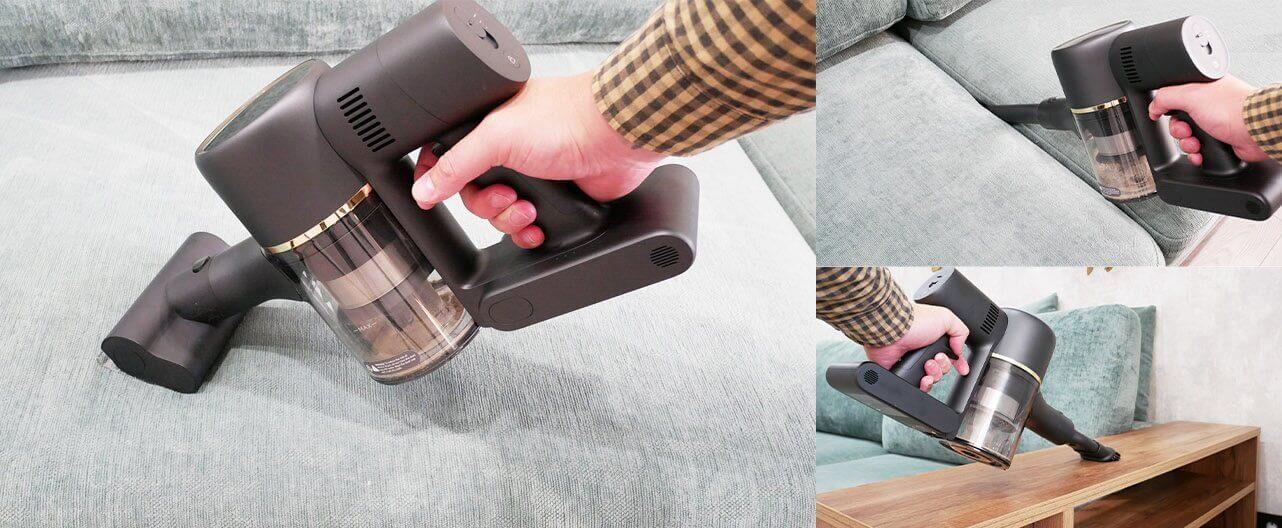 Baldų apmušalų valymo įrankis turi turbo šepetį su silikoninėmis mentelėmis. Fiksatorių galima nuimti plokščiu atsuktuvu arba moneta. Plyšių valymo įrankis yra naujo dizaino, panašus į „Dreame R20“: jis turi ištraukiamą lanksčią dalį, leidžiančią pasiekti ankštas, siauras vietas ir surinkti šiukšles. Ištraukiamas šerelių antgalis taip pat yra standartinė įranga, kaip ir ankstesniuose modeliuose.