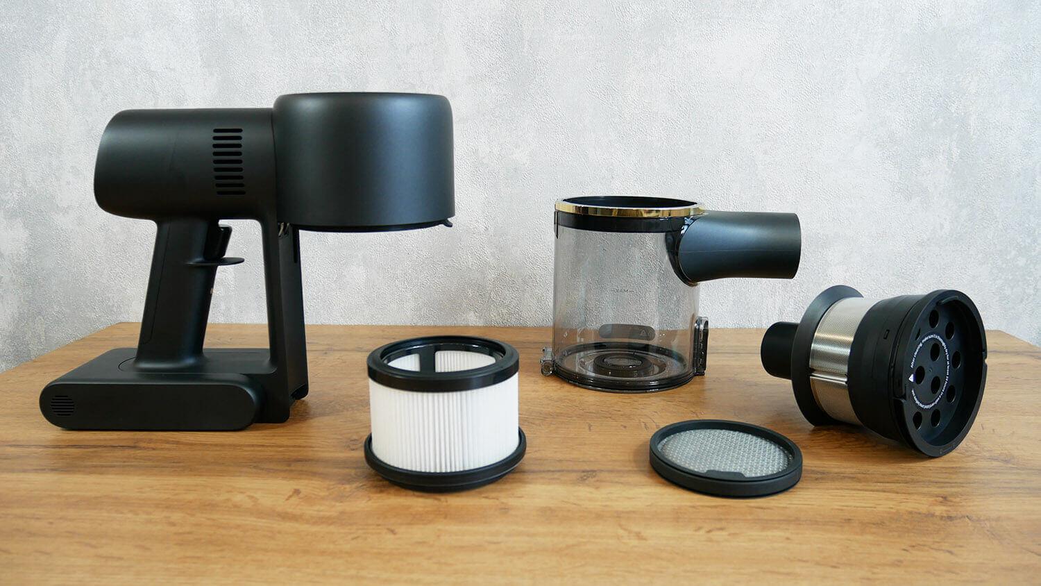 Dulkių surinktuvas taip pat yra nuimamas. Pagrindiniame įrenginyje yra HEPA filtras prieš variklį ir kempinės formos filtras išmetimo angose. Dulkių surinktuvą galima ištuštinti dviem būdais: paspaudus mygtuką ant korpuso, kuris atidaro dugną, arba iškratant jį išėmus filtravimo sistemą, kurią sudaro audinio filtras, ciklonas ir tinklelis. Taip sukuriama penkių pakopų oro filtravimo sistema.