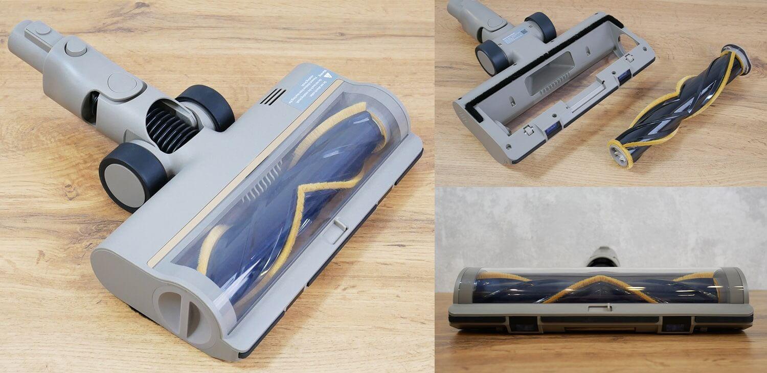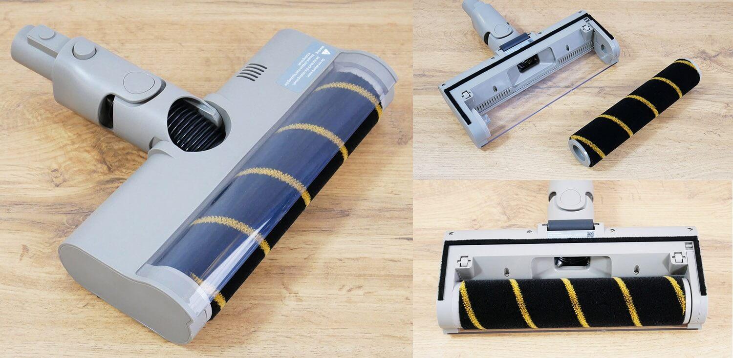 Volelį lengva nuimti be papildomų įrankių. Už volelio yra šukos plaukams ir naminių gyvūnėlių plaukams šalinti. Pats volelis išsikiša į korpuso priekį, todėl jis kruopščiau surenka šiukšles palei sienas ir kampuose.