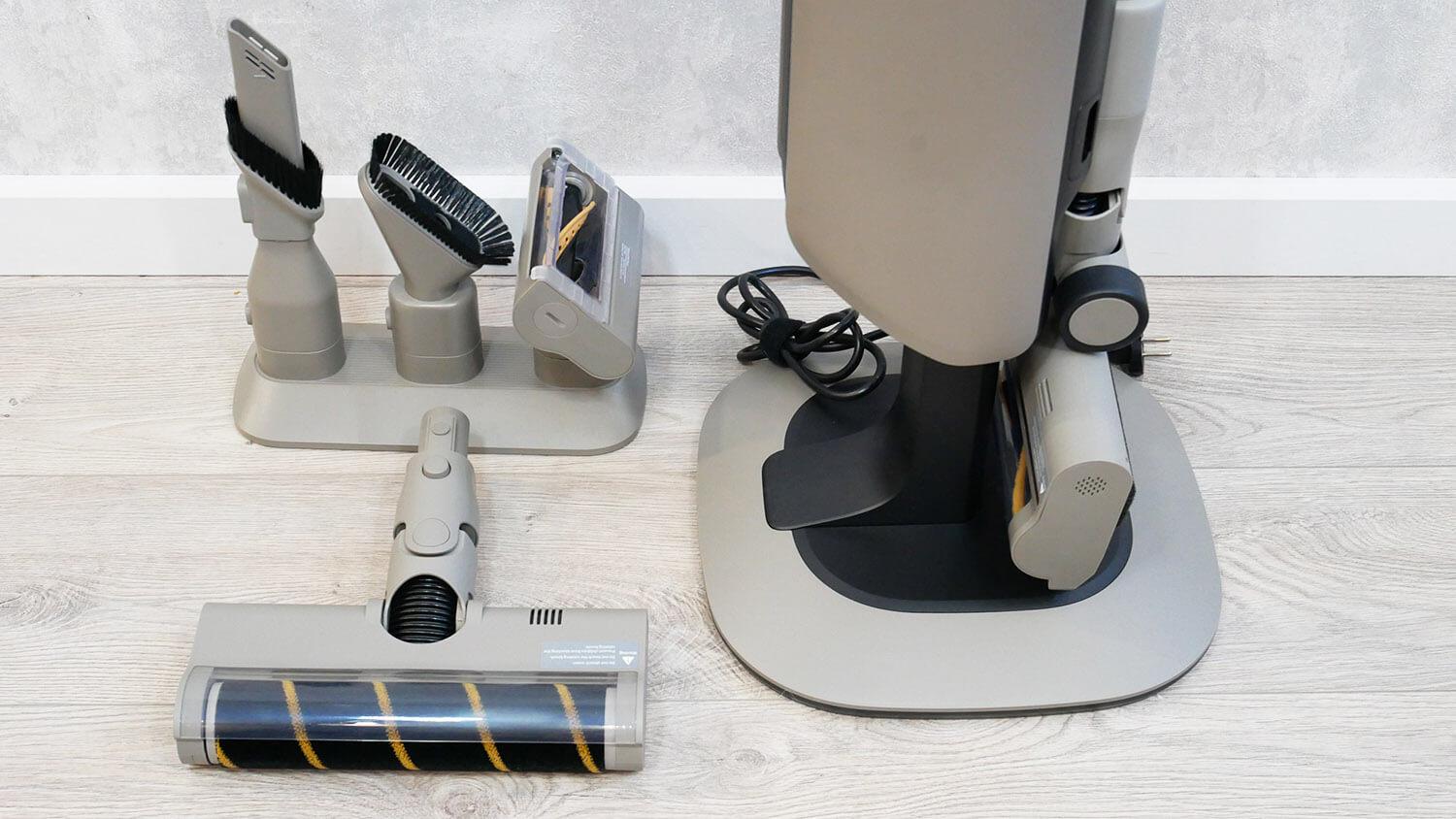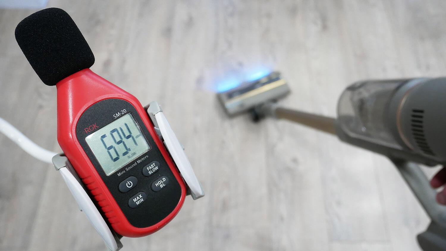 Galiausiai pereikime prie bandymų. Pirmiausia patikrinsime „Dreame Z10 Station“ akumuliatoriaus veikimo laiką turbo režimu su prijungtu pagrindiniu grindų antgaliu. Jis veikė 10 minučių ir 20 sekundžių, o tai yra gana įprasta galingiems vertikaliems dulkių siurbliams.