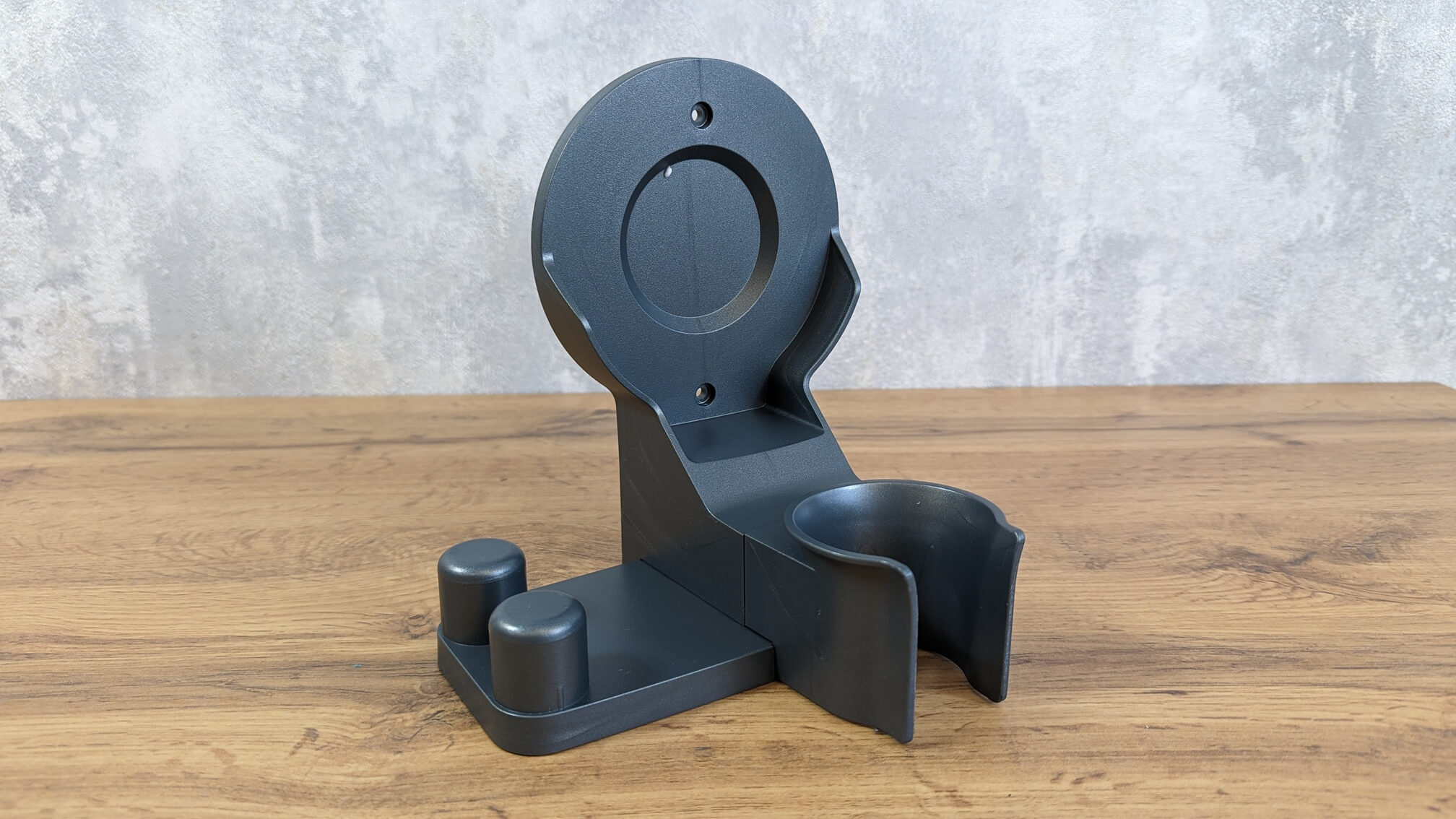 Verta paminėti, kad nėra vertikalios parkavimo galimybės už laikiklio ribų, o tai nepatogu. Tačiau yra sieninis laikiklis, kurį galima naudoti dulkių siurbliui ir pridedamiems priedams laikyti: