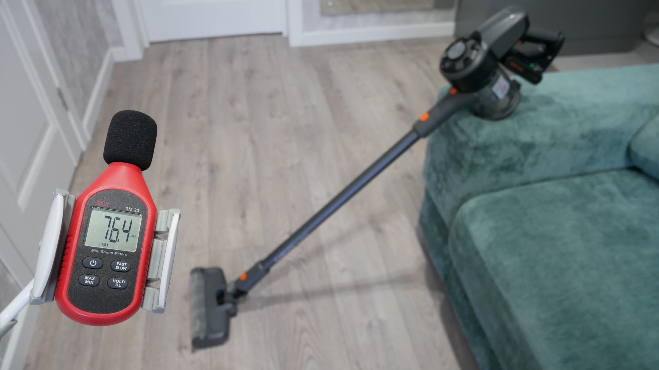 Kalbant apie svorį, jį išmatavau pats. Pagrindinis įrenginys sveria 1409 gramus, prailginimo vamzdis – 237 gramus, o pagrindinis grindų antgalis – 746 gramus. Iš viso surinktas dulkių siurblys sveria 2392 gramus. Jis lengvesnis nei dauguma panašių dulkių siurblių, ir tai yra privalumas.