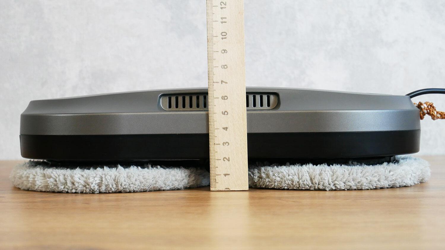 Korpuso aukštis yra maždaug 67 mm, nors gamintojas nurodo 62 mm. Bet kokiu atveju, toks plonas korpusas leidžia šį robotą naudoti ant langų su grotomis.