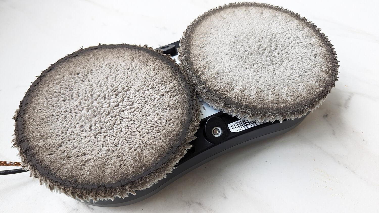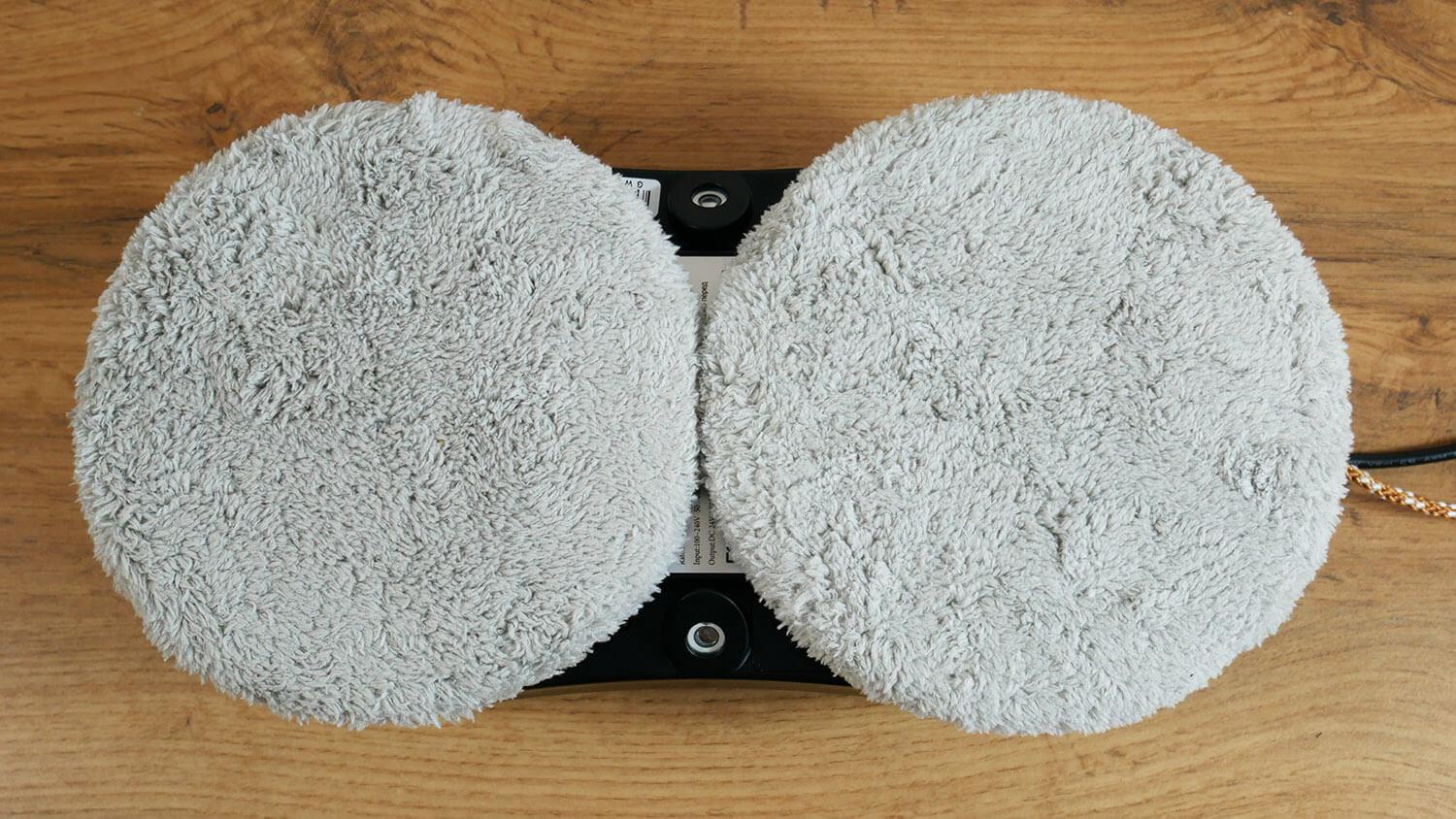 Matote, kad jis tikrai efektyvus ir atlieka darbą. Verta paminėti, kad robotą kiekvienoje srityje paleidau du kartus. Pirmą kartą – su sausomis servetėlėmis, kad surinkčiau didžiąją dalį nešvarumų ir dulkių. Antrą kartą – su įjungtu automatiniu vandens tiekimu.