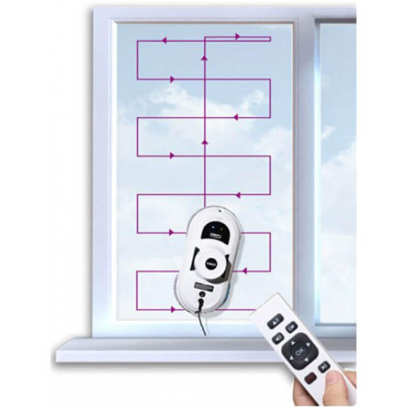 Langų valytuvas veikia elektra. Įjungus, du apvalūs diskai pradeda judėti ir valo nešvarų paviršių. Modelis turi tris veikimo režimus: