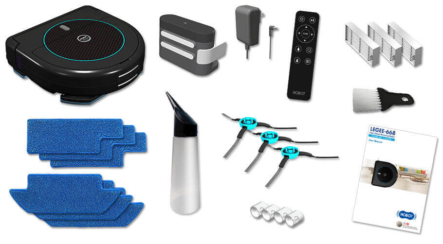 „HOBOT Legee 669“ komplekte esančių komponentų apžvalga: