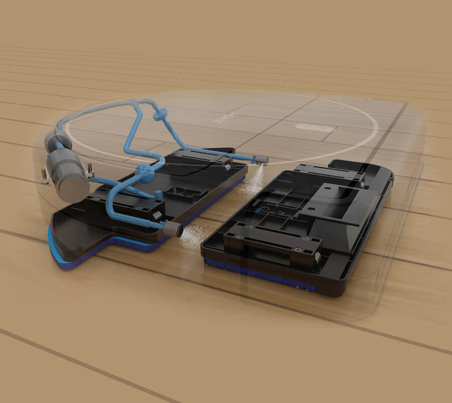 2. Pavaros mechanizmas su skudurų judesiais judančiose platformose, atliekančiais dešimt svyravimų per sekundę, imituoja žmogaus rankų judesius valant grindis nuo išdžiūvusių dėmių.