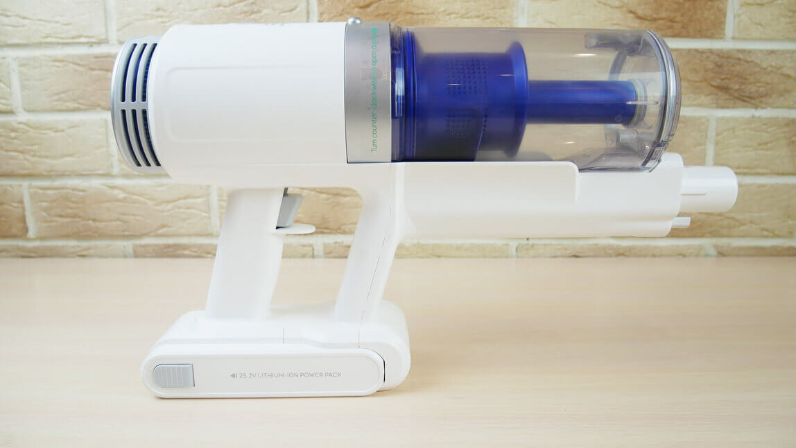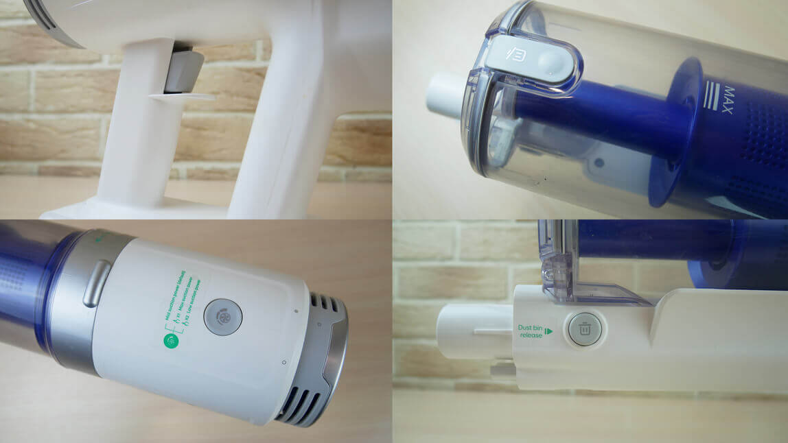 Įkroviklio prievadas yra gale, po rankena. Baterija yra išimama, o tai yra privalumas. Išpučiamas HEPA filtras yra pagrindinio įrenginio gale. Dulkių talpyklą lengva nuimti, kaip ir... Dreame P10 ProMano nuomone, tai vienas patogiausių konstrukcijos sprendimų. Dulkių surinktuvas turi papildomą HEPA filtrą ir cikloną. Atliekas galima ištuštinti viršuje, nuėmus ciklono filtrą, arba galite tiesiog paspausti mygtuką ir visos atliekos iškris apačioje.