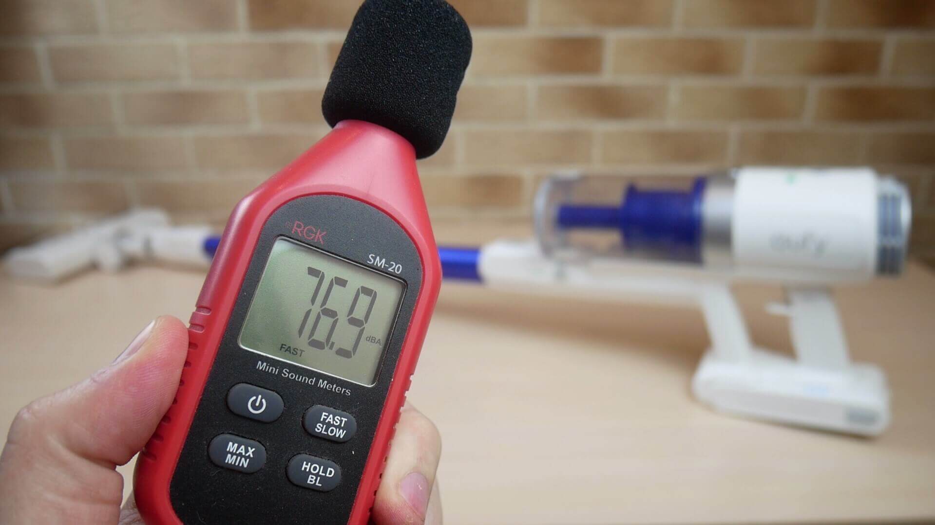 Esant minimaliai galiai, „Eufy HomeVac S11 Reach“ triukšmo lygis yra nuo 72,5 iki 73 dB. Esant vidutinei galiai, triukšmo lygis šiek tiek padidėja ir siekia 73,5 dB. Esant maksimaliai galiai, didžiausias triukšmo lygis buvo 77 dB. Šio dulkių siurblio triukšmo lygis yra mažesnis už vidutinį, tačiau jo galia taip pat nėra tokia didelė.