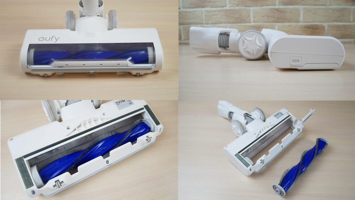 Šepetys atleidžiamas paspaudus mechaninį mygtuką, kuris atidaro skląstį. Skląsčiui nuimti nereikia naudoti papildomo įrankio, kaip yra daugumos kitų vertikalių dulkių siurblių atveju. Ir tai gerai! Šepečio velenas turi trumpus, bet labai lanksčius šerelius. Ši konstrukcija labiau tinka kilimams valyti. Deja, lygių paviršių atsarginis volelis nepridedamas.