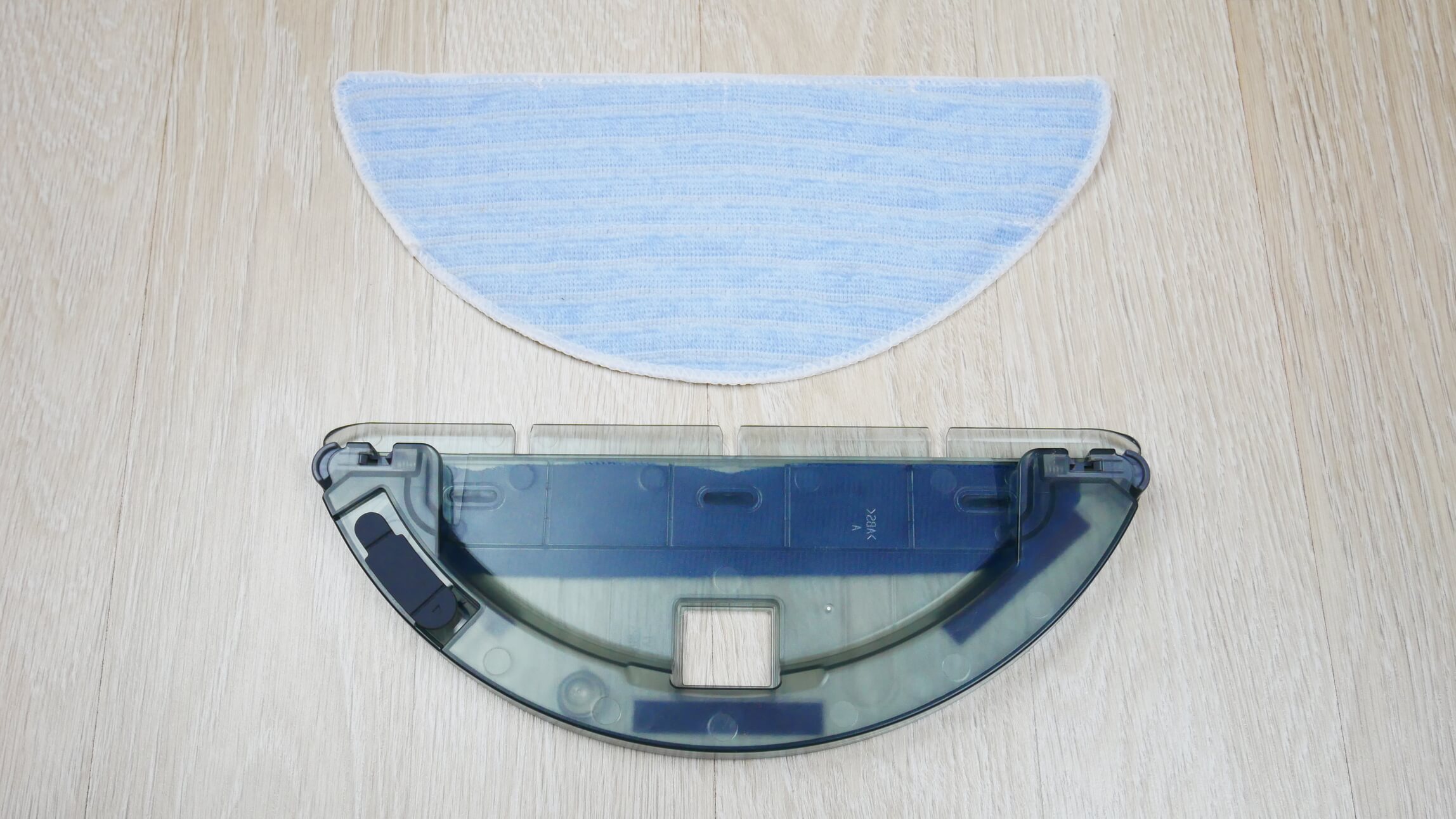 Mažos talpos šlapio valymo antgalis talpina iki 80 ml vandens. Fiksavimo mygtukai yra šone, o sandarus vandens įleidimo vožtuvas – viršuje. Skystis gravitacijos būdu teka per tris angas ant valymo pagalvėlės.