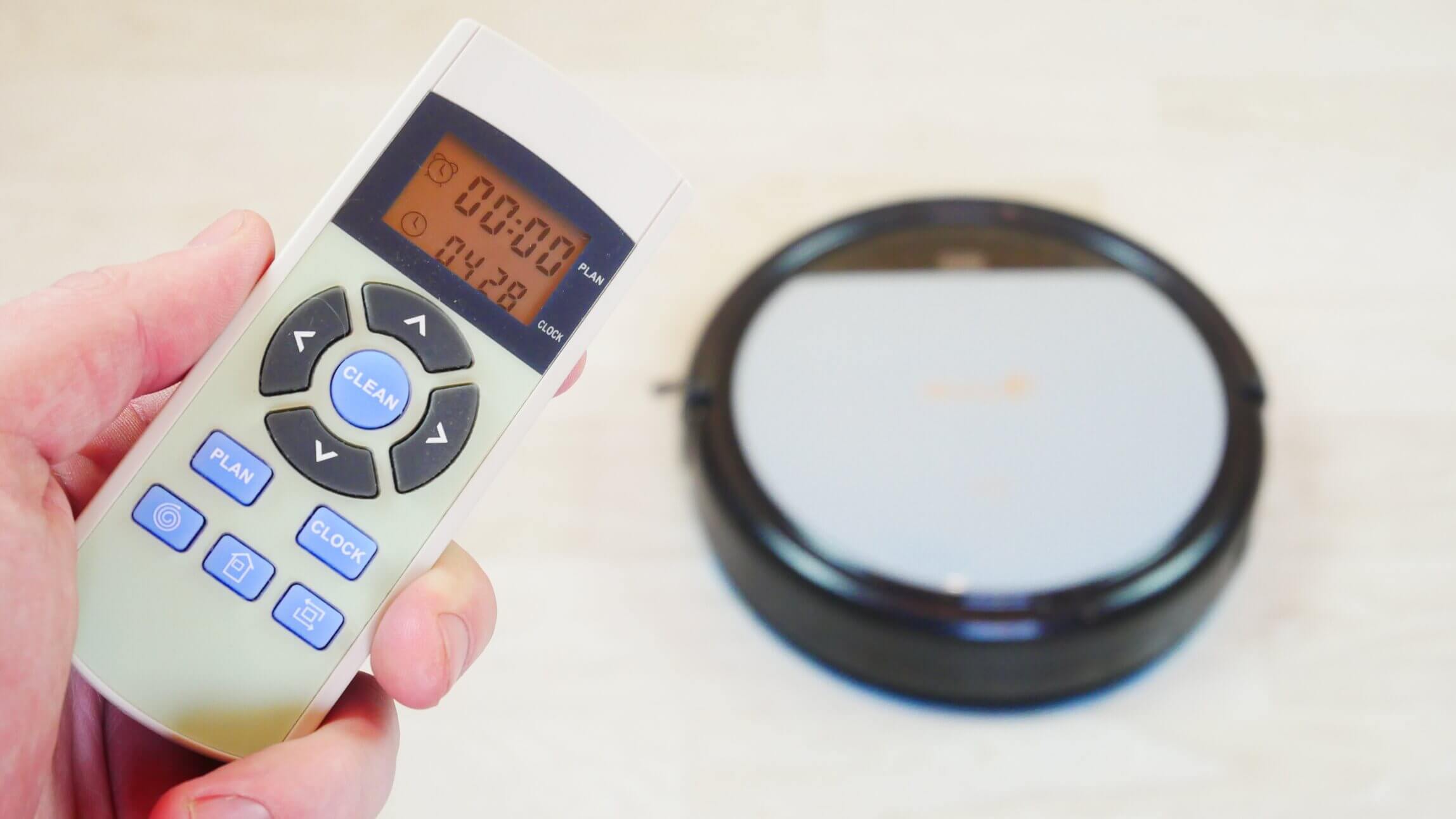 Nuotolinio valdymo pulte yra ekranas, kuriame rodomas suplanuotas valymo laikas ir dabartinis laikas. Po juo yra mygtukai roboto dulkių siurblio rankiniam valdymui, o centre – paleidimo / pauzės mygtukas. Po valdymo svirtimi yra dar dvi mygtukų eilės: jie skirti suplanuoto valymo grafiko nustatymui, dabartinio laiko nustatymui, taškinio valymo režimui, roboto grįžimo į įkrovimo bazę priverstiniam valdymui ir perimetro valymo režimui.
