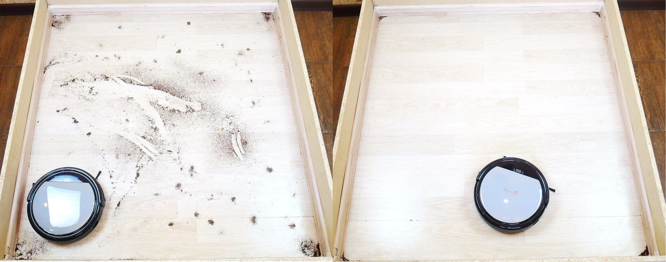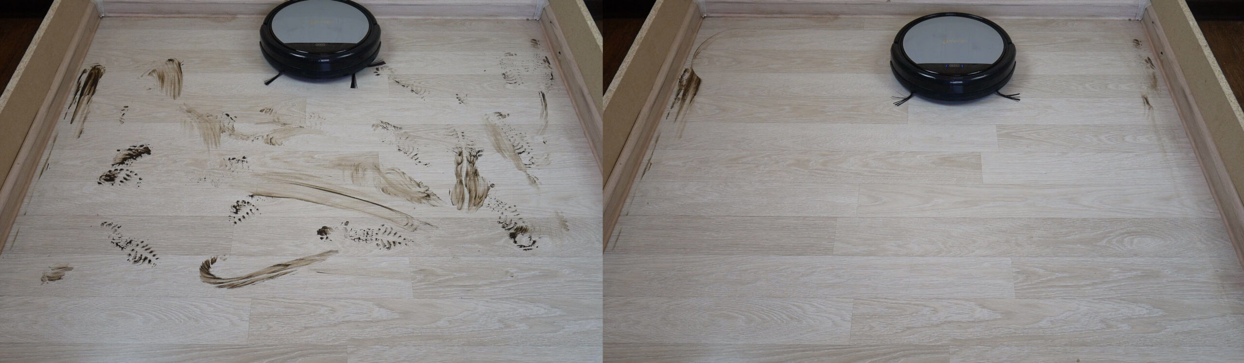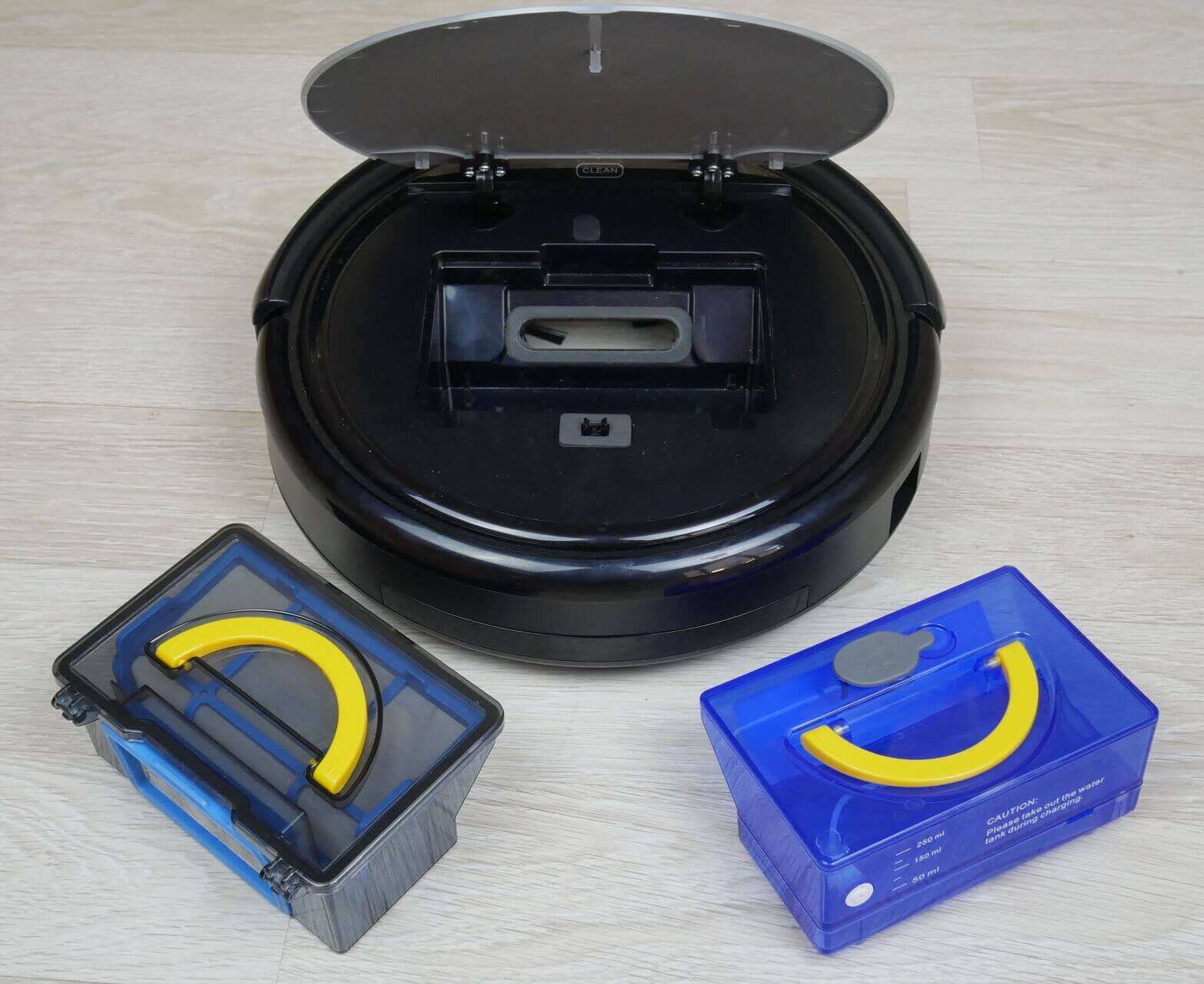 Kalbant apie šlapią valymą, robotas atliko gerą darbą. Jis sugebėjo pašalinti šiek tiek išdžiūvusius nešvarumus nuo grindų. Jis paliko tik nešvarumų pėdsakus palei grindjuostę, tačiau tai yra visų robotinių dulkių siurblių silpnoji vieta. Ant laminato grindų stovo centre nebuvo jokių dryžių ar dėmių, todėl testas buvo sėkmingas.