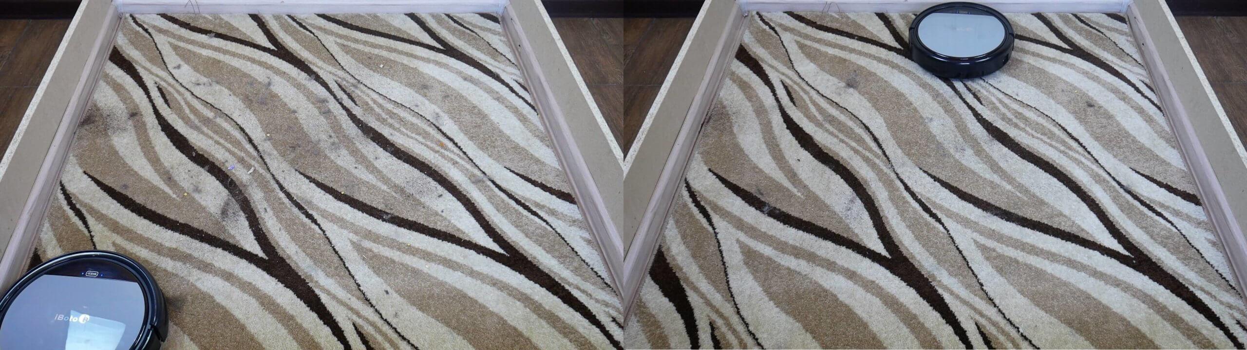 Tačiau būtent dėl ​​to, kad jie neturi turbo šepečio, panašūs robotiniai dulkių siurbliai prasčiau valo kilimus. „iBoto Smart Aqua X320G“ nėra išimtis; galite patys įsitikinti, kad jo valymo rezultatai kilimuose yra prasti.