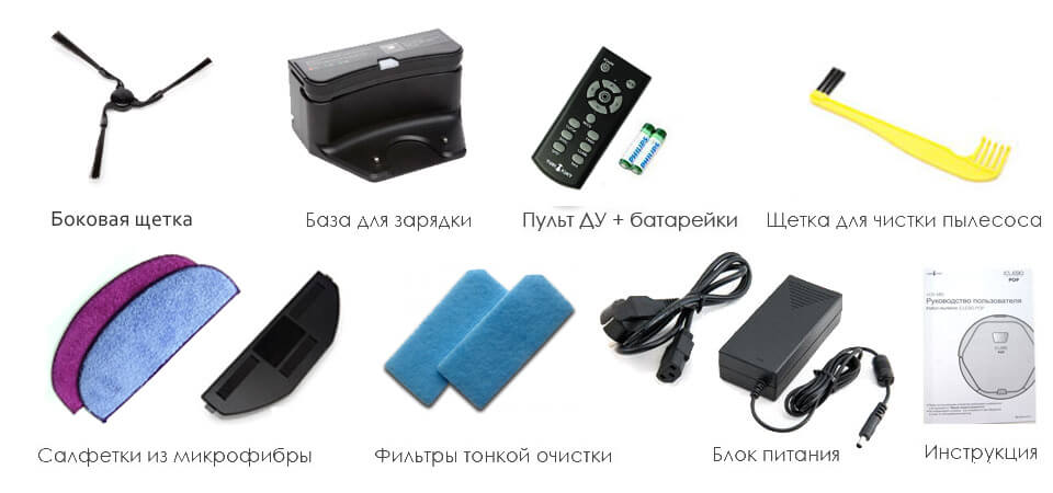 „iClebo Pop“ komponentai parodyti nuotraukoje:
