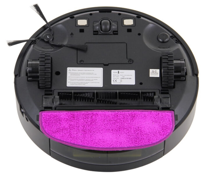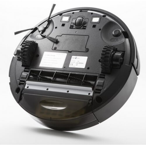 Pažvelgus į apačią, matyti priekinis šepetys, kuris visas šiukšles sušluoja įrenginio centro link. Pagrindinis šepetys ir guminis grandiklis yra centre ir kartu stumia šiukšles į dulkių konteinerį. Didesnės ir sunkesnės dalelės surenkamos automatiškai, o lengvesnės dalelės įsiurbiamos į rezervuarą su dvisluoksniu filtru.