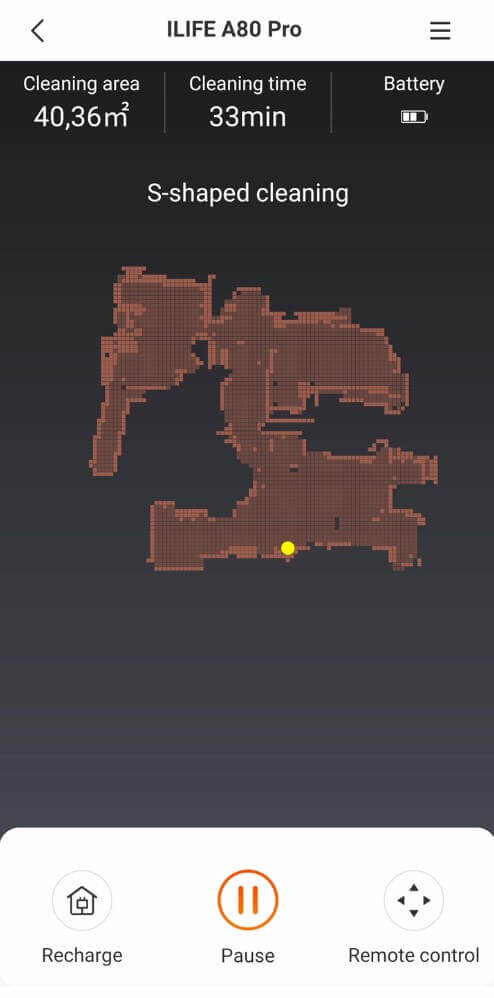 Iš pradžių, judant iš vieno kambario į kitą, žemėlapis susipainiojo ir pradėjo pats save atkurti, bet po to robotas sugebėjo visiškai jį atkurti ir aprėpti visą galimą plotą. Žemėlapis buvo šiek tiek netikslus, bet kambario geometrija buvo teisinga. „iLIFE A80 PRO“ išvalė vos per 33 minutes – tai geras greitis. Testavimo metu taip pat buvo pastebėta, kad robotas gana greitai judėjo grindimis. Šis testas buvo sėkmingai išlaikytas.