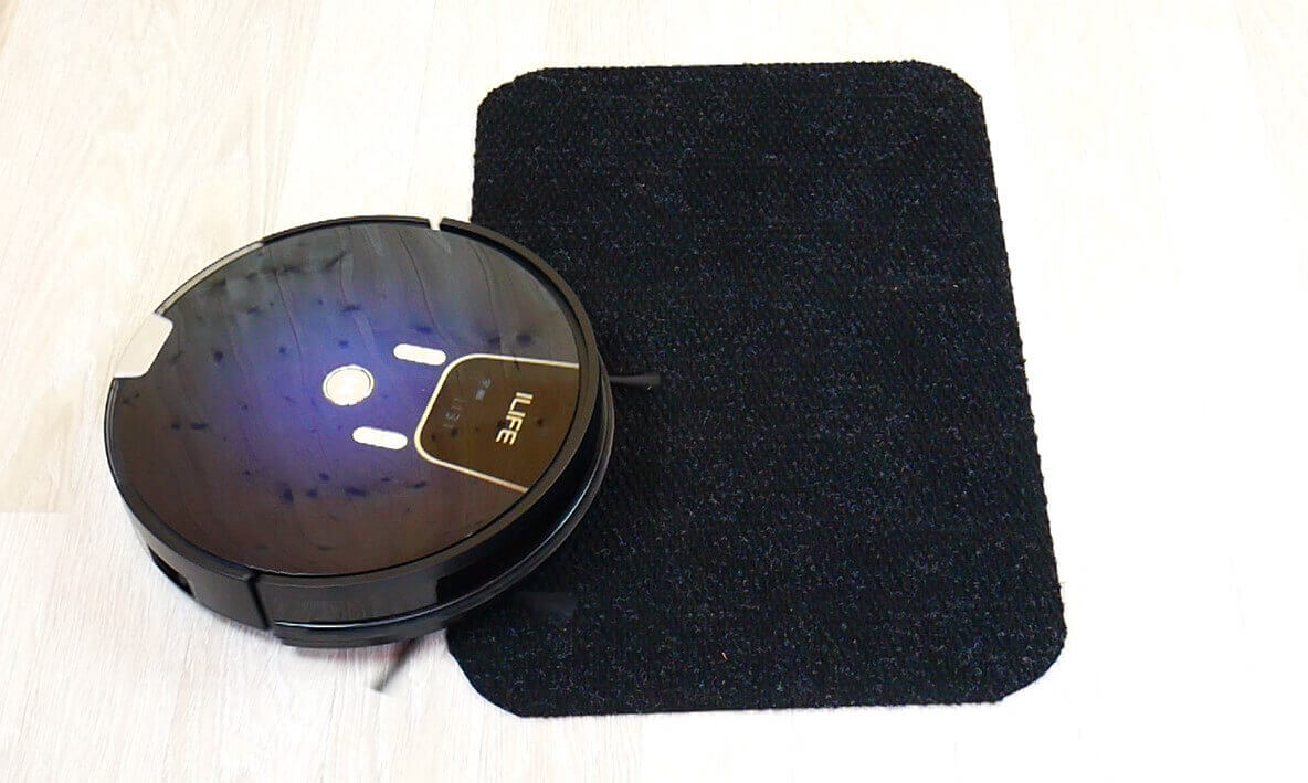 Tačiau robotas nebijo tamsių paviršių ir gali laisvai jais judėti neatpažindamas aukščio pokyčių, o tai yra pliusas.