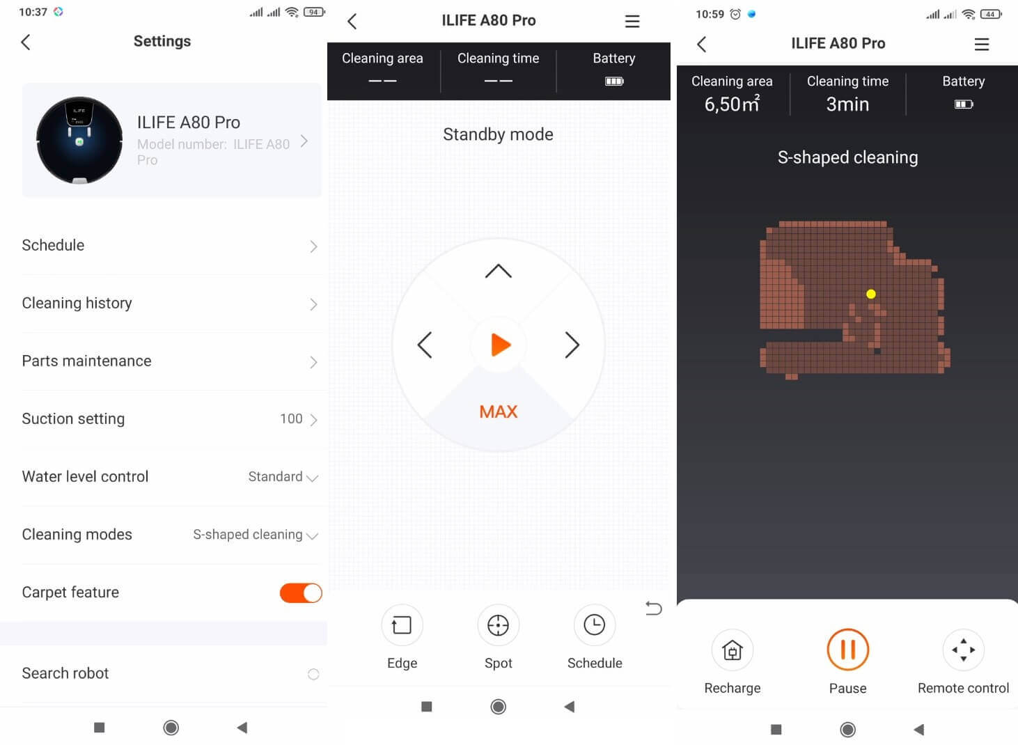 „iLIFE“ programėlėje robotas sukuria realaus laiko kambario žemėlapį, bet jo neišsaugo atmintyje. Pagrindiniuose nustatymuose galite pakeisti roboto dulkių siurblio pavadinimą, nustatyti suplanuotą valymą, peržiūrėti valymo istoriją, stebėti eksploatacinių medžiagų būseną, sklandžiai reguliuoti siurbimo galią, pasirinkti vandens srauto greitį vienam audiniui, pasirinkti valymo režimą ir įjungti automatinį galios padidinimą valant kilimus. Taip pat galite įjungti roboto garsinį įspėjimą ir atkurti gamyklinius nustatymus.