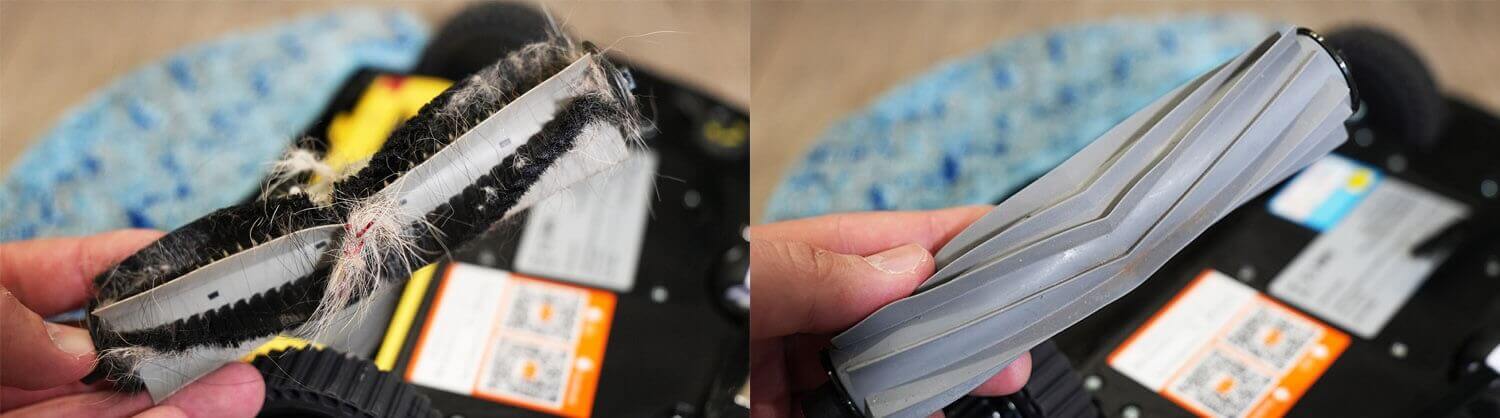 Robotas iš karto turi standartinį šerelių ir žiedlapių šepetį. Jį galite pakeisti silikoniniu šepečiu, kurį lengviau valyti nuo susivėlusių plaukų ir naminių gyvūnėlių plaukų. Jis taip pat mažiau susivelia. Abu šepečiai yra nenuimami.