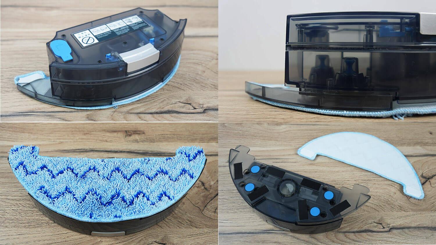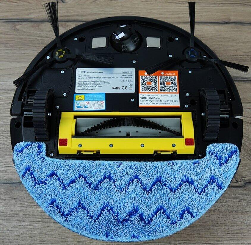 Vietoj dulkių surinktuvo robote galite įmontuoti 300 ml vandens baką. Jame yra nedidelis skyrius šiukšlėms surinkti. Šluostė prie pagrindo pritvirtinta „Velcro“ lipdukais. Įdomu tai, kad šio bako platforma vibruoja dėl viduje įmontuotų variklių. Tai leidžia robotui geriau išvalyti nešvarumus. Verta paminėti, kad su įmontuotu vandens baku „iLIFE L100“ šluoja tik šiukšles be siurbimo, o tai nėra idealu.
