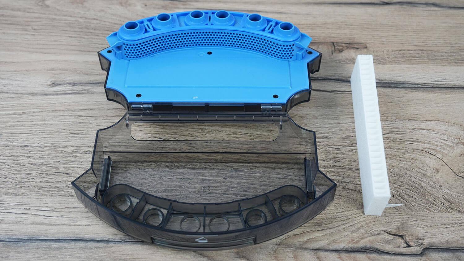 Dulkių konteineris yra gale ir jo talpa yra maždaug 450 ml. Konteinerio filtravimo sistema yra unikali, pasižyminti korio struktūra. Gamintojo teigimu, ši konstrukcija leidžia robotui dulkių siurbliui išlaikyti siurbimo galią, kai konteineris pildosi. Be to, jame yra neplaunamas HEPA filtras.