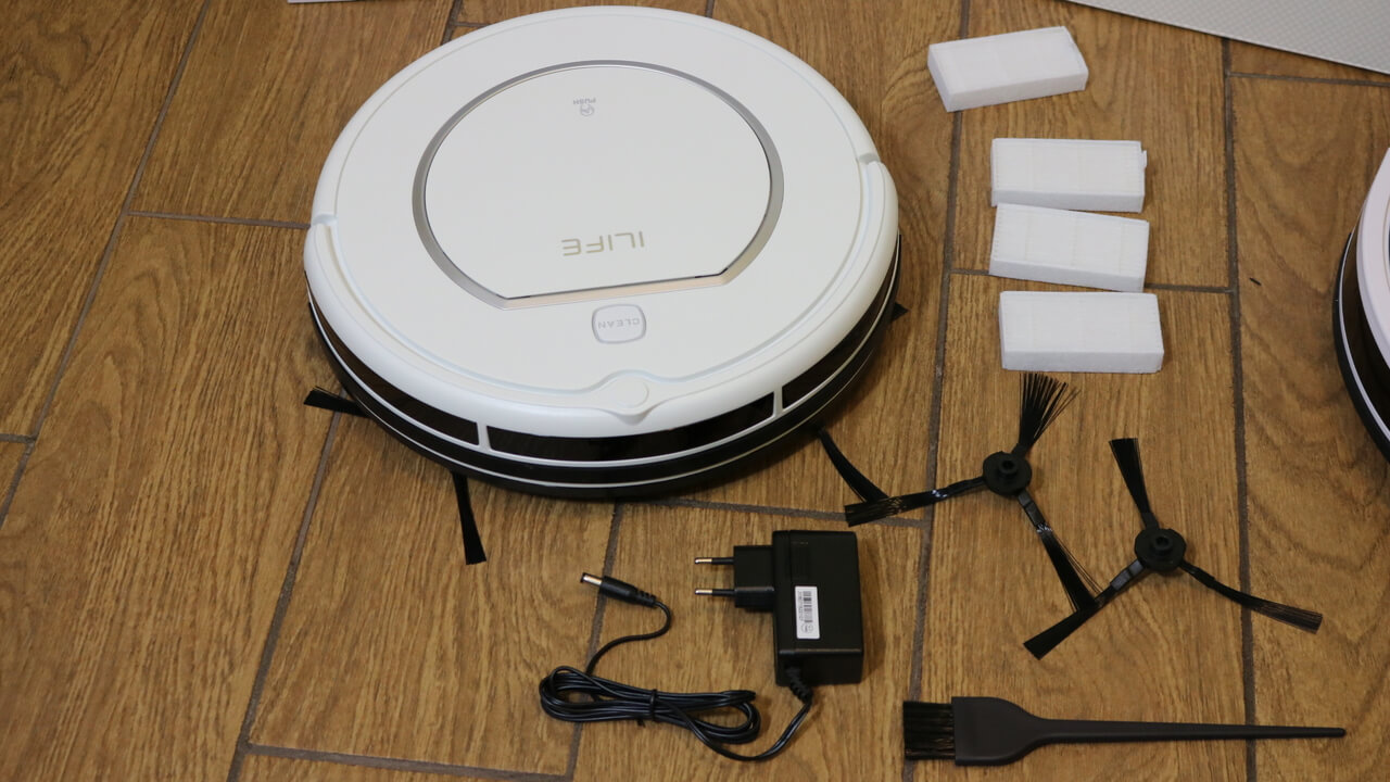 Minimalistinis korpusas nekenkia įrenginio našumui. Jame yra visi reikalingi komponentai standartiniam sausam valymui. Žemiau esančioje nuotraukoje parodytas visas „iLife V1“ roboto rinkinys: