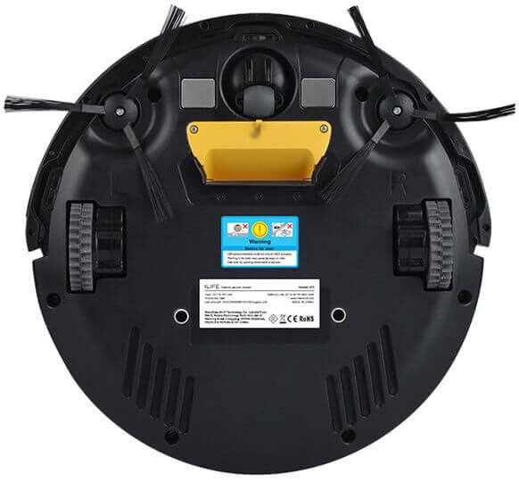Roboto dulkių siurblio gale yra patvarūs guminiai ratukai šonuose ir vienas priekinis ratas, leidžiantis lengvai pakeisti kryptį. Čia taip pat yra automatinio įkrovimo jutiklis ir kontaktai, du atsparūs dilimui šoniniai šepetėliai, centrinė siurbimo anga, apsaugos nuo kritimo jutikliai, įkraunama baterija po dangteliu ir angos mikropluošto šluostei pritvirtinti. Dėl didelių ratukų įrenginys gali lengvai judėti tarp lygių grindų ir kiliminių paviršių.