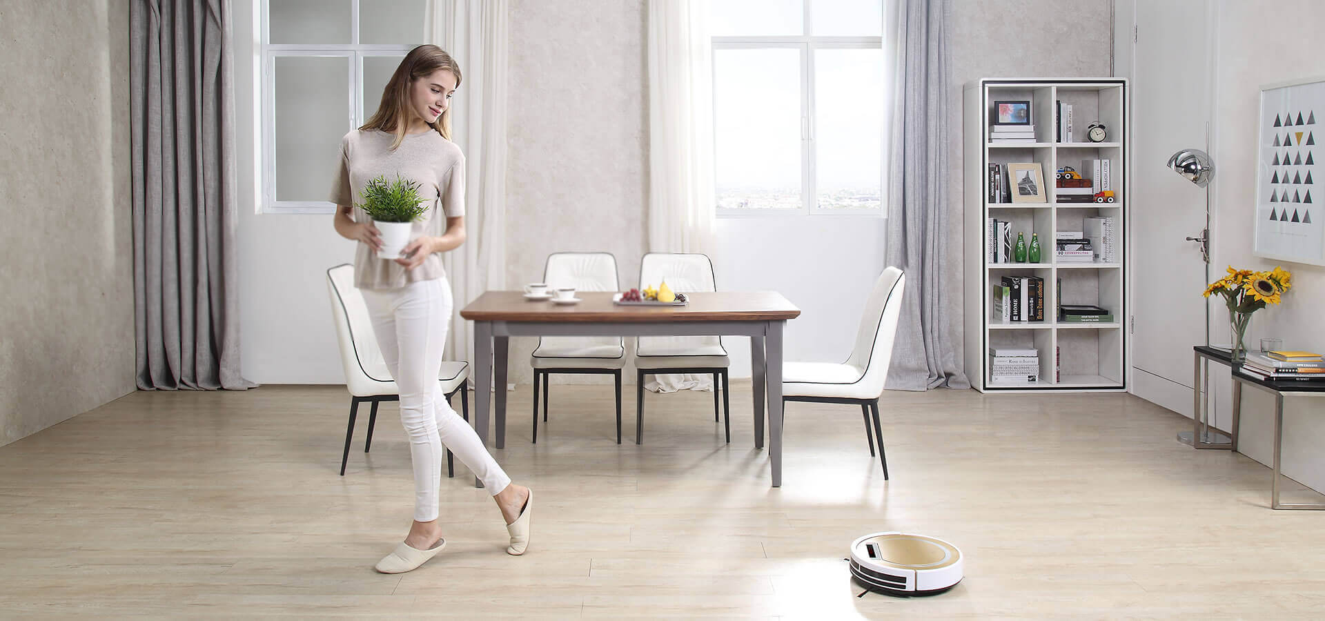 Be sauso valymo, robotas dulkių siurblys taip pat gali valyti grindis šlapiomis šluostėmis. Tam tikslui komponentai apima atskirą vandens baką, kuris pakeičia dulkių surinktuvą kietoms šiukšlėms ir dulkėms, taip pat specialų modulį su nuimamu nanopluošto audiniu su lipniomis juostelėmis.