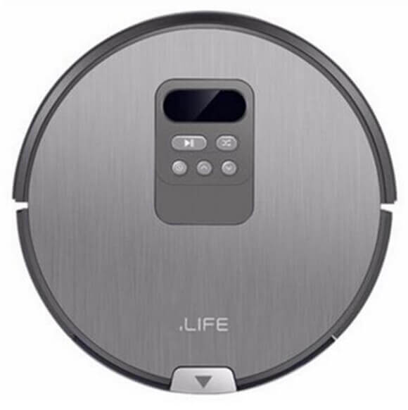 Žiūrint iš viršaus, įrenginys yra idealiai apvalus, tik su šiek tiek išsikišusiu buferiu roboto dulkių siurblio šone. Viršutinis skydelis pagamintas iš aliuminio ir yra labai patvarus. Jame yra LED ekranas, kuriame rodoma dabartinė „iLife X750“ būsena, valdymo mygtukai ir didelis mygtukas dulkių surinktuvui išimti (kuris išstumiamas iš šono).