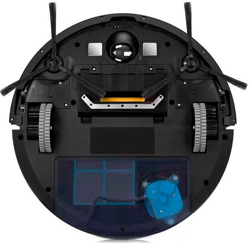 Apvertus robotinį dulkių siurblį, išryškėja standartinis komponentų rinkinys: kontaktiniai padėklai įkrovimo stotelei, du galingi šoniniai ratukai, priekinis pasukamas ratukas manevravimui, pora šoninių šepečių, centrinė siurbimo anga, apsaugos nuo kritimo jutikliai ir akumuliatoriaus skyrius. Čia pat yra dulkių surinktuvo apačia, kurią galima pakeisti rezervuaru su automatiniu vandens tiekimu, o valymo šluostę galima pritvirtinti prie apačios specialiu tvirtinimo elementu.