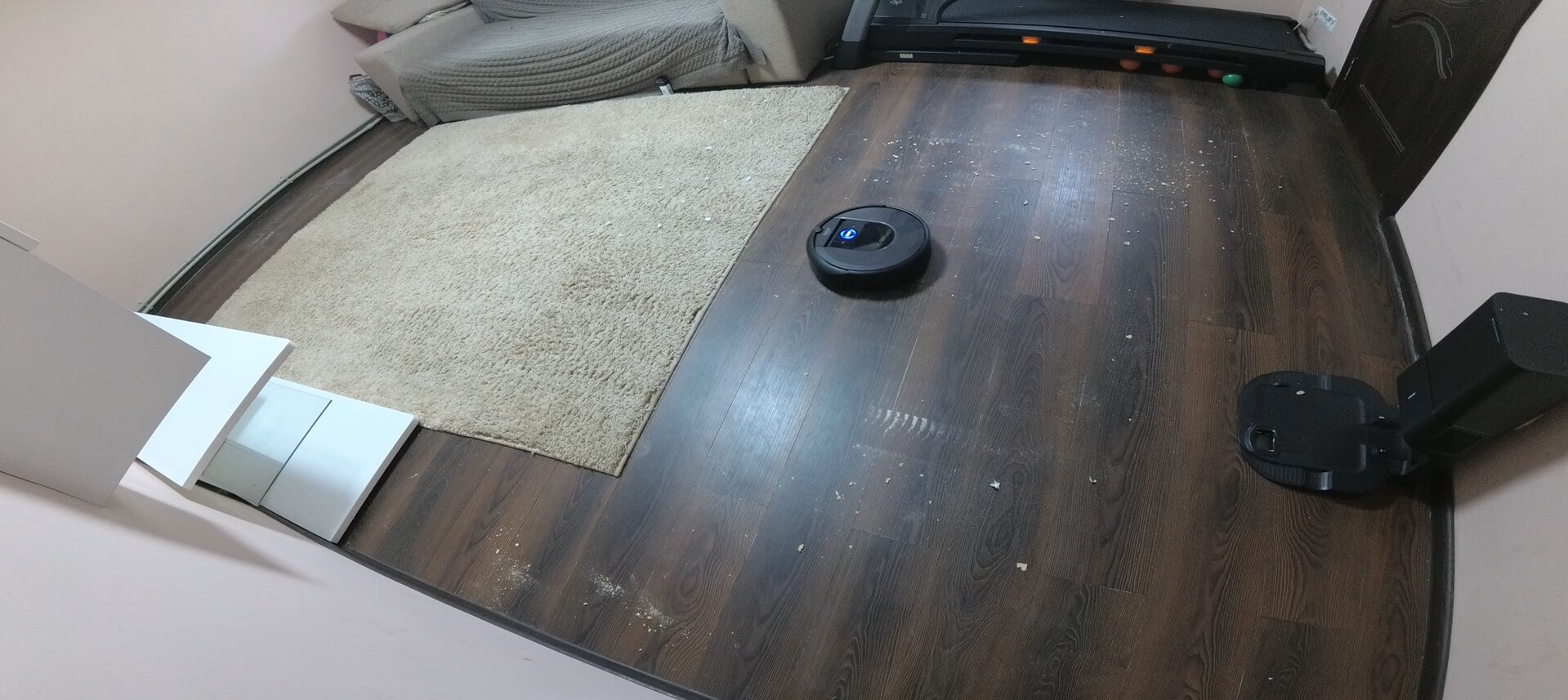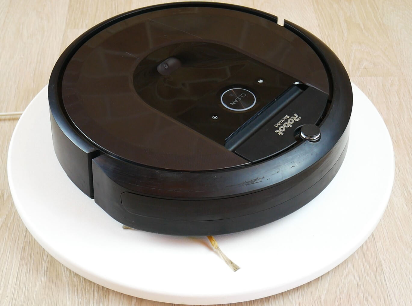 Be to, robotas beveik akimirksniu užstrigs, jei ant grindų bus kojinės, įkrovimo laidas ar, pavyzdžiui, kalėdinės eglutės lemputės galas. Šioje kovoje eglutė tikrai nukris. Taigi, „iRobot Roomba i7+“ moko drausmės ir tvarkos beveik nuo pirmos naudojimo dienos.