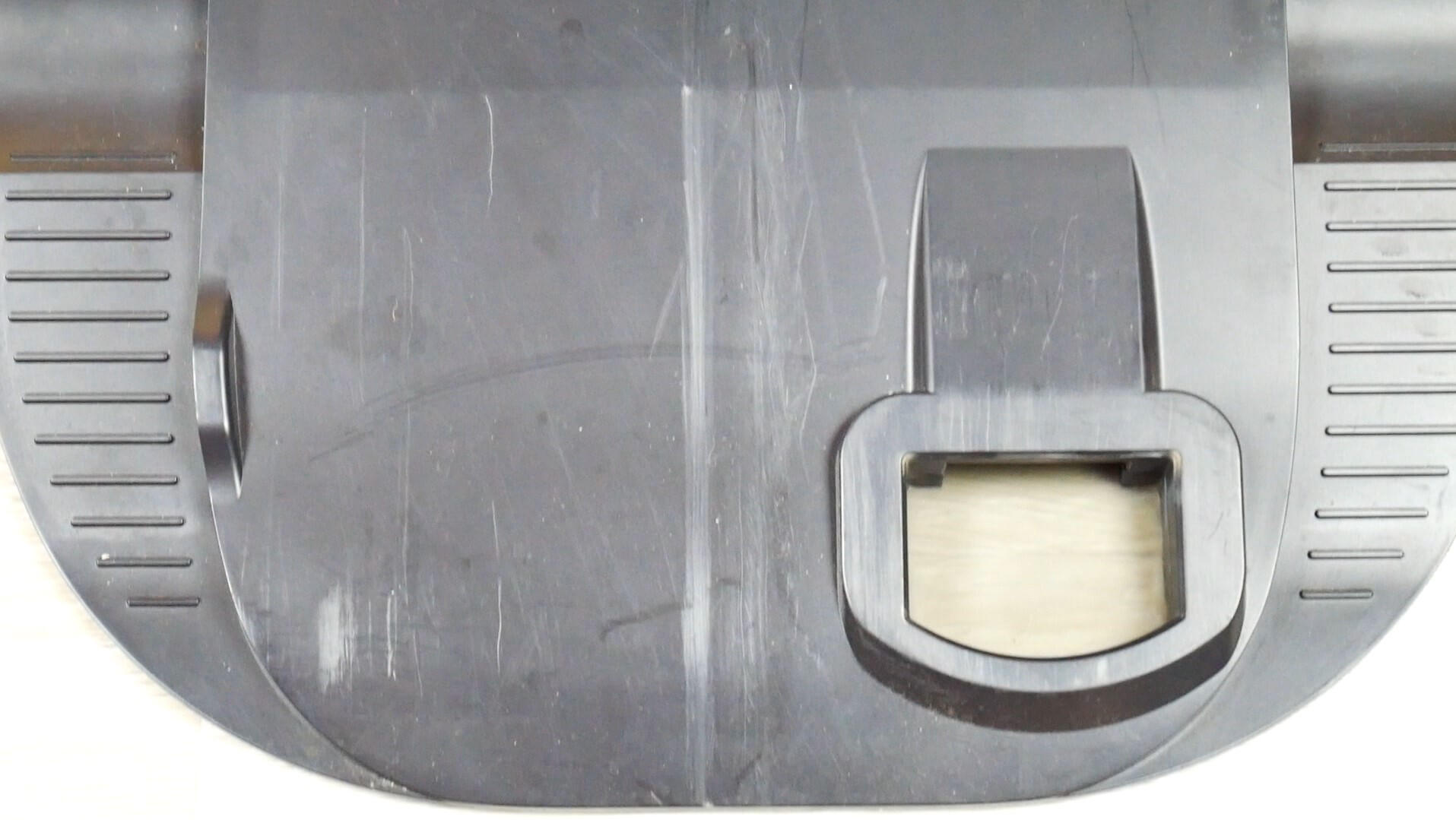 Pažvelkime į robotą iš viršaus. Labiausiai nukentėjo bamperis su mechaniniu prisilietimu ir viršutinis dangtelis. Bamperis yra gana geros būklės; yra keletas gilių įbrėžimų, bet jie vos pastebimi ant matinio juodo plastiko. Tačiau blizgus viršutinis dangtelis buvo pastebimai subraižytas, kai robotas praėjo po baldais. Įbrėžimai gilūs ir pastebimai gadina roboto išvaizdą. Tai iš karto rodo, kad apsaugos nuo trukdžių sistema nėra labai gerai suprojektuota.