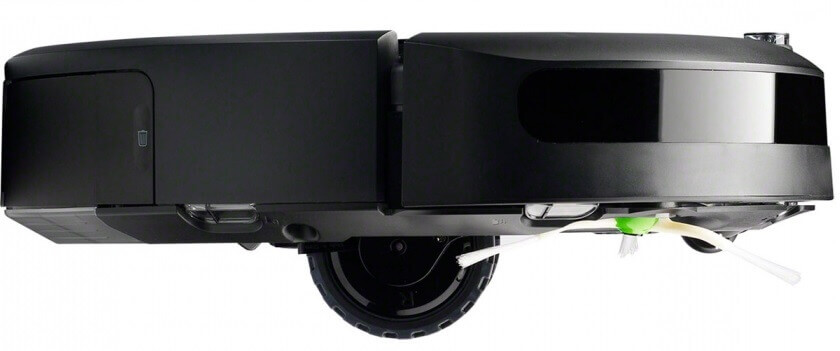 Šone yra minkštas buferis, kuris apsaugo robotą dulkių siurblį nuo susidūrimų su kliūtimis. Dulkių surinkimo talpykla taip pat yra nuimama iš šono.