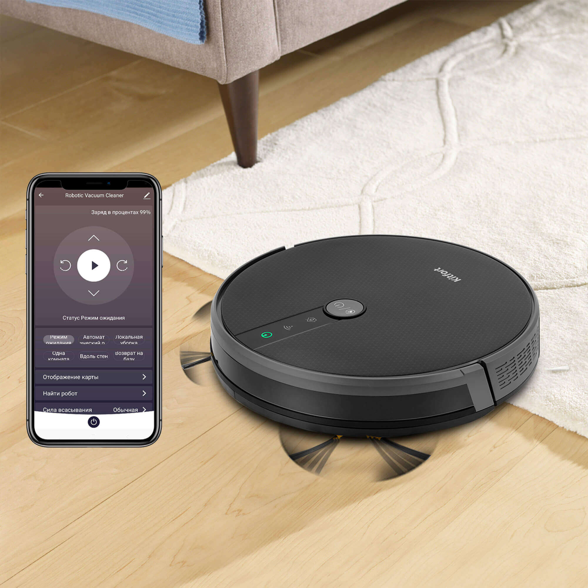 Robotą dulkių siurblį galima valdyti mygtuku, esančiu ant korpuso, nuotolinio valdymo pultu arba „Smart Life“ programėle. Čia galite reguliuoti funkcijas ir valymo parametrus, nustatyti tvarkaraštį ir keisti siurbimo galią.