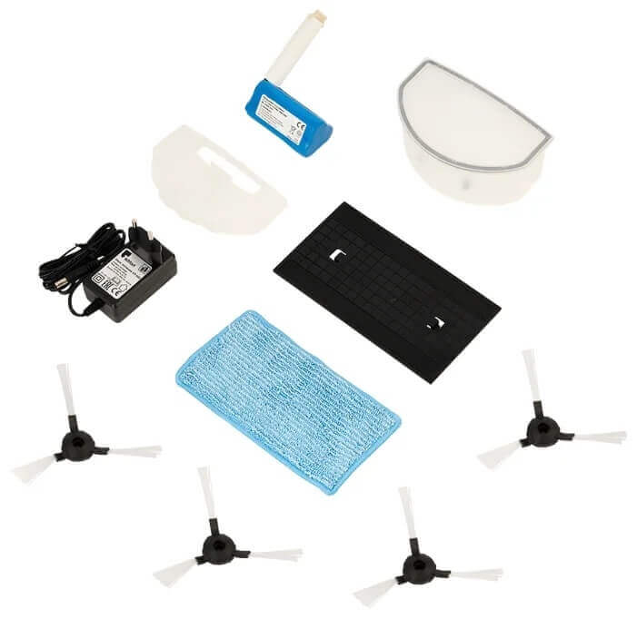 Kaip matome iš apžvalgos, priedų komplekte nėra įkrovimo bazės, nuotolinio valdymo pulto ar judesio ribotuvo. Į tai verta atsižvelgti perkant robotą dulkių siurblį. Nors tai yra biudžetui draugiškas robotas, daugelis panašių gaminių šioje kainų kategorijoje turi šiuos priedus.