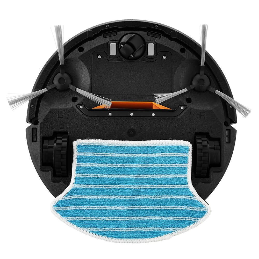 Jei jus domina šlapio valymo režimas, roboto dulkių siurblio apačioje įrenkite nuimamą vandens talpyklą (120 mililitrų), kaip minėjome ankstesnėje apžvalgoje, ir pritvirtinkite mikropluošto šluostę.