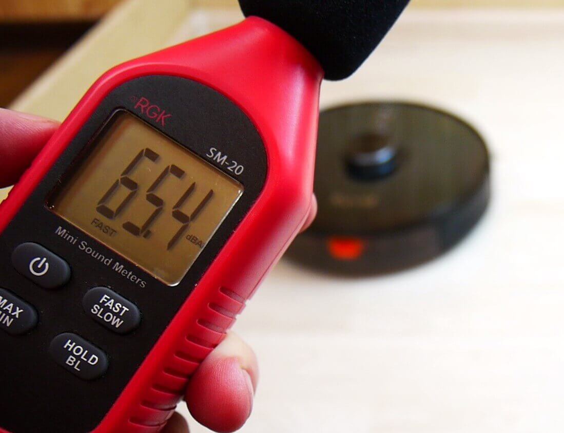 Triukšmo lygis grindų valymo režimu yra apie 58 dB. Esant minimaliai siurbimo galiai, jis gali siekti 60 dB, „Žemu“ režimu triukšmo lygis siekia 64 dB, „Standartiniu“ režimu triukšmo lygis yra nuo 64 iki 66 dB, o esant maksimaliai galiai, didžiausias triukšmo lygis buvo 72,5 dB.