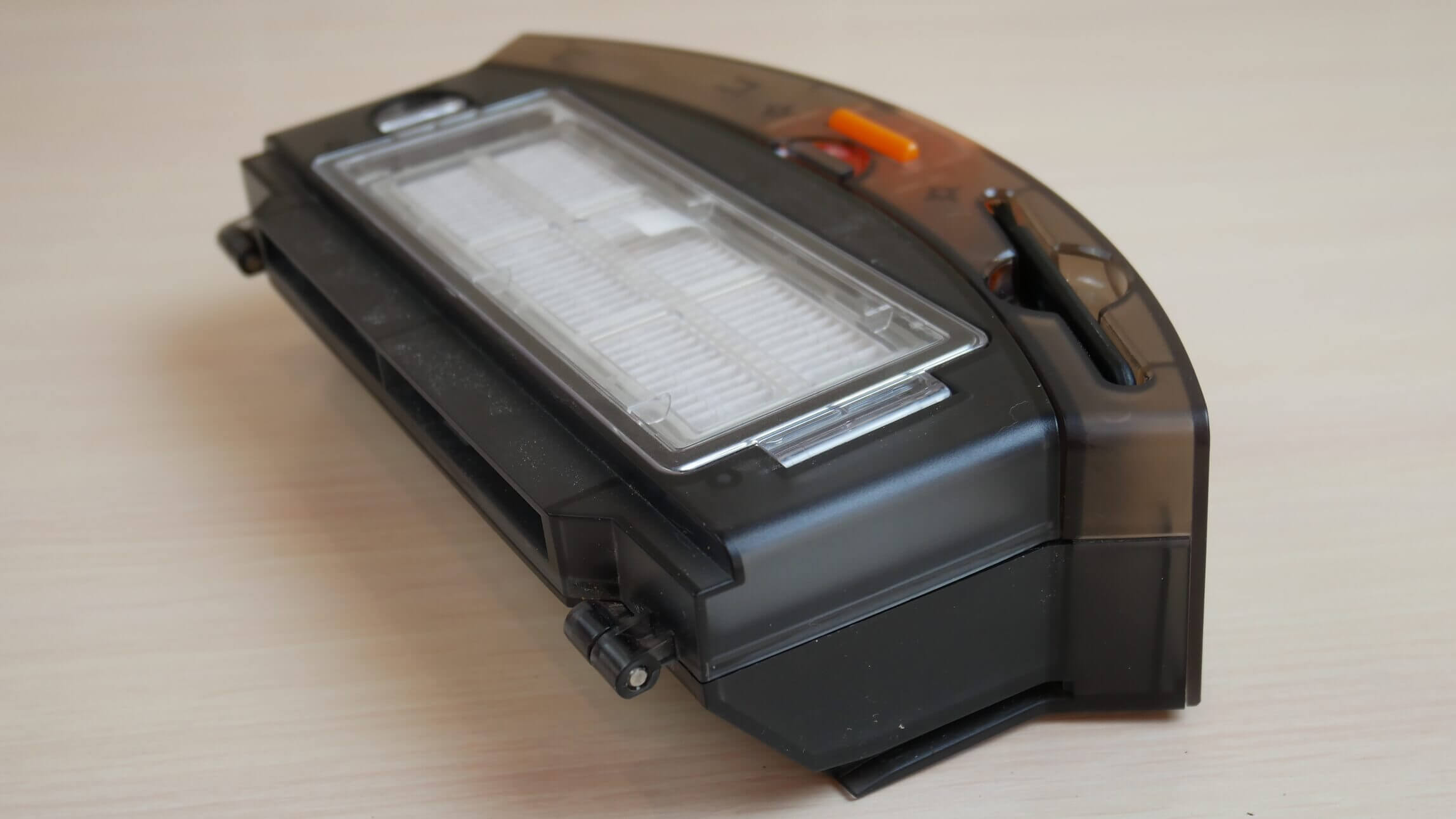 Rankiniu būdu pašalinau dalį šiukšlių, kad palengvinčiau užduotį ir pažiūrėjau, ar „Kyvol Cybovac S31“ dabar gali išsivalyti pats. Net ir pusiau pilnai dulkių surinkimo talpyklai esant, jis vis tiek išsivalė, palikdamas viduje šiek tiek šiukšlių. Savaiminio išsivalymo našumas yra prastas, palyginti su panašiais gaminiais.