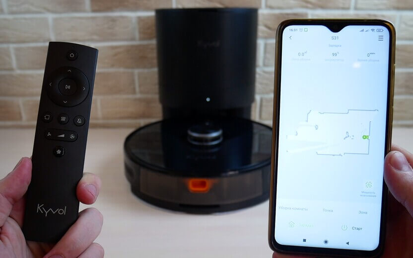 Pažvelkime į „Kyvol Cybovac S31“ funkcijas. Robotas dulkių siurblys valdomas naudojant „Kyvol“ mobiliąją programėlę ir nuotolinio valdymo pultą.